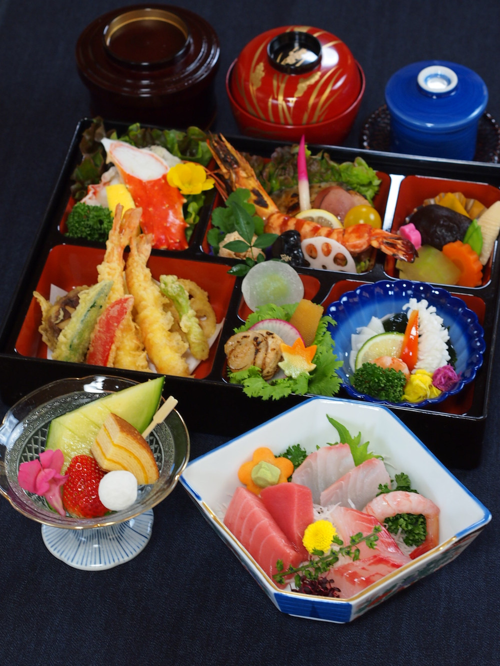 豊洲市場から仕入れた新鮮な魚を使用し、丁寧に調理した大人向けの祝い料理と合わせてお届けいたします。