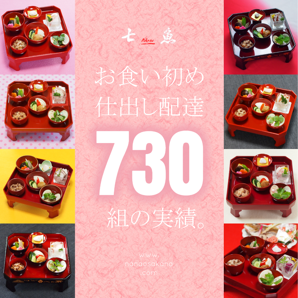 七魚のお食い初め仕出し配達は、これまでに730組のお客様にご利用いただいております。